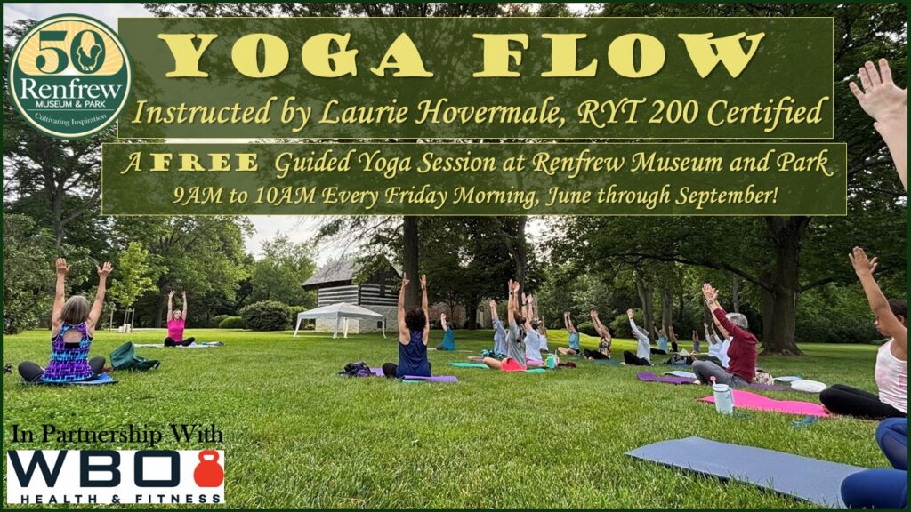 Join certified instructor Laurie Hovermale of WBO Health & Fitness for FREE yoga sessions in the Museum House Backyard at Renfrew on Friday mornings from June through September!