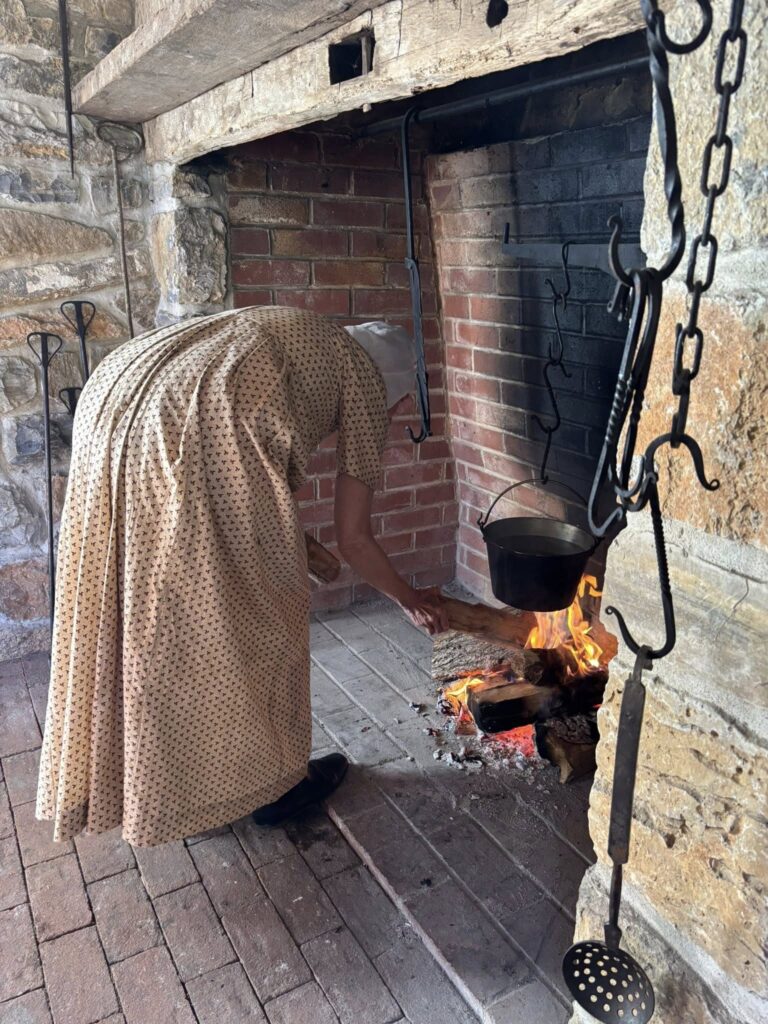 Enjoy an intimate, hands-on culinary experience inside Renfrew’s 1814 Summer Kitchen. Guests will be taught the basics of early nineteenth-century open hearth cooking techniques by preparing their own period meal under the guidance of our domestic life historians in period dress. Menu selections reflect the seasonal ingredients available to local families like the Royers during the early nineteenth century and can be tailored to participants’ dietary needs. You will learn about historic hearth equipment, how it works, and use it safely to create a delicious and hearty. Nothing tastes better than a hearth-cooked meal made by your own two hands! Select from one of the dates listed below for your personalized instruction in historic cookery today.