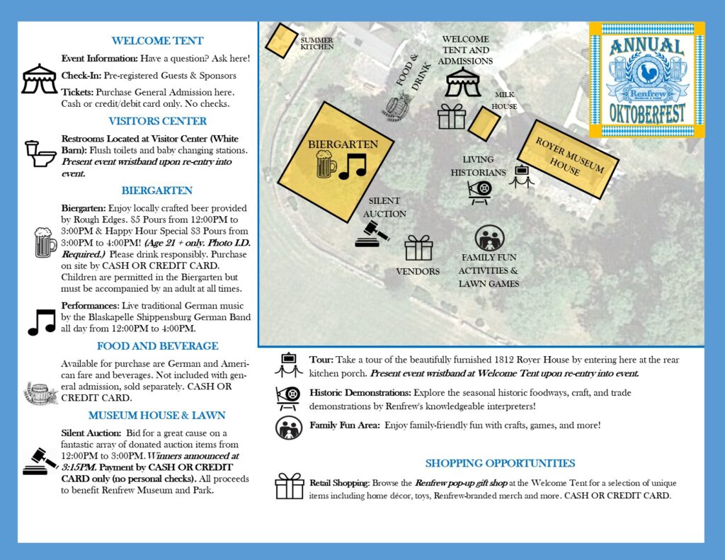 MERCHANDISE & VENDORS: Select items from the Museum Shop including seasonal décor, branded items, walking sticks, and more will be available in the Renfrew Pop-Up Shop. Local craft and food vendors will also be available for the Oktoberfest Fall Market!